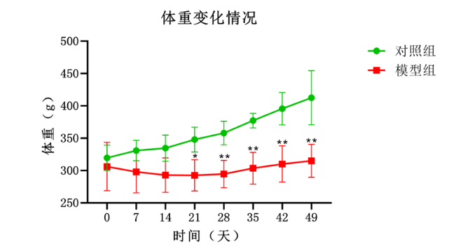 对照组、模型组体重情况