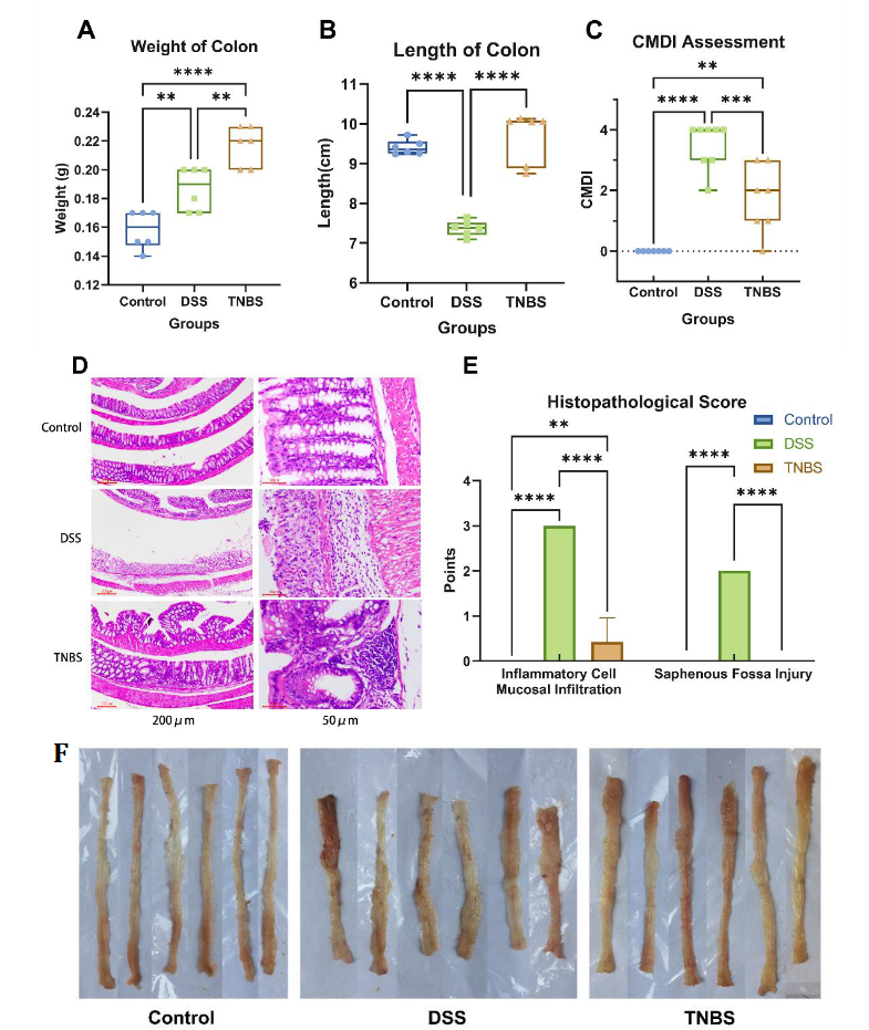 2. 试剂与设备:DSS粉末,蒸馏水或饮用水用于配制DSS溶液。髓过氧化物酶(MPO)检测试剂盒。结肠长度测量仪、自动化DAI评分系统