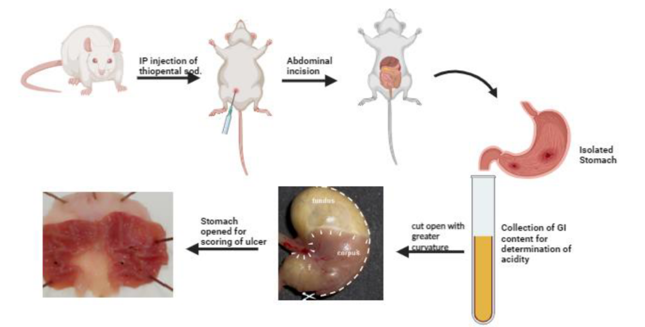- 处死与取胃:在灌胃后预定的时间点(如大鼠1小时后,小鼠30~60分钟后),通过颈椎脱臼法或其他合适的方法处死动物。然后迅速剖腹,结扎幽门和贲门,以防止胃内容物外溢。