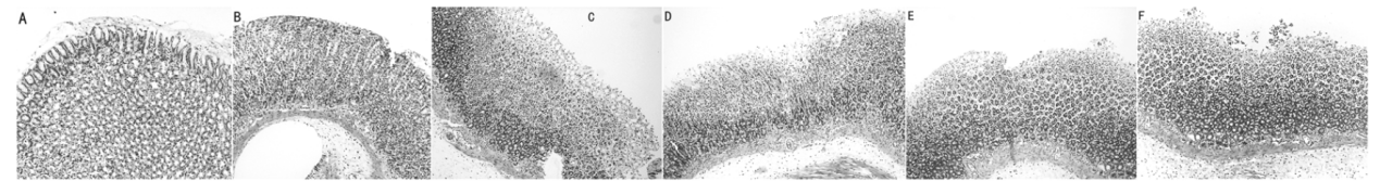 实验大鼠胃黏膜病理组织学改变(HE100×)